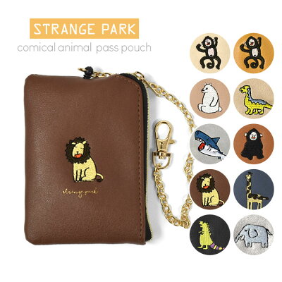 Strange Park (ストレンジパーク) フェイクレザー コミカルアニマル 刺繍 リール付き パスポーチ /レディース 定期入れ ケース icカード リール リール付 リール付きパスケース 小銭 小銭入れ付き キーケース パスケース ポーチ 可愛い かわいい おしゃれ オシャレ 動物/ p