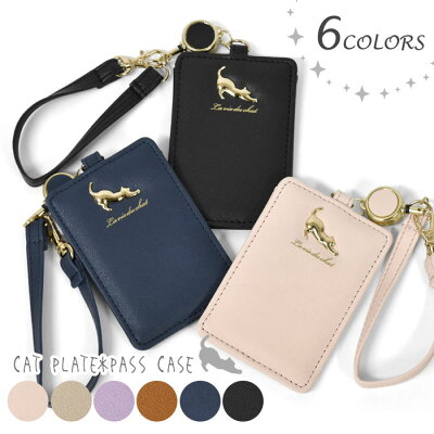 フェイクレザー 猫プレート リール付き パスケース /レディース 定期入れ ケース icカード ストラップ ストラップ付き 1枚 リール リール付きパスケース かわいい おしゃれ 猫 ねこ 猫グッズ 小物 ピンク ネイビー ブラック 黒/ r
