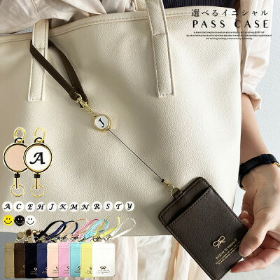 【楽天ランキング1位】パスケース リール付き 定期入れ 選べる イニシャル IDケース 社員証 IDカードホルダー 伸びる カードケース スマイル かわいい リボン レディース ストラップ付 伸縮リール 送料無料