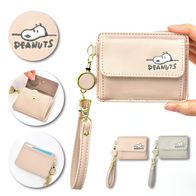 スヌーピー パスケース 定期入れ 合成皮革 リール付き 2枚 キャラクター シンプル レディース ICカードケース カードケース コンパクト 通勤 大人 女性 メンズ 男性 通学 女子 男子 大学生 高校生 リール ブランド かわいい 可愛い